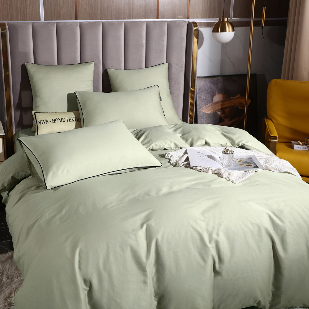 Постельное белье Египетский хлопок Элитный Светло-фисташковый 2 спальный, на резинке 140x200x30