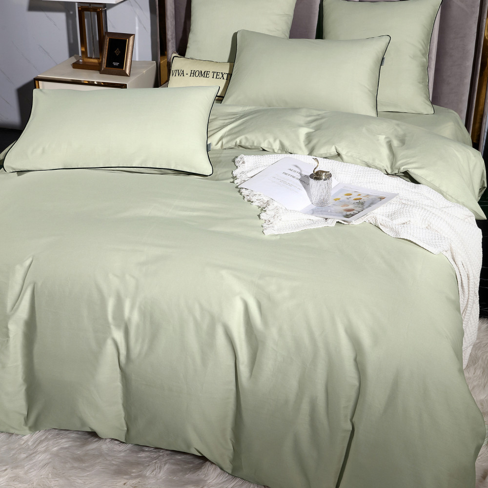 Постельное белье Египетский хлопок Элитный Светло-фисташковый 2 спальный, на резинке 160x200x30