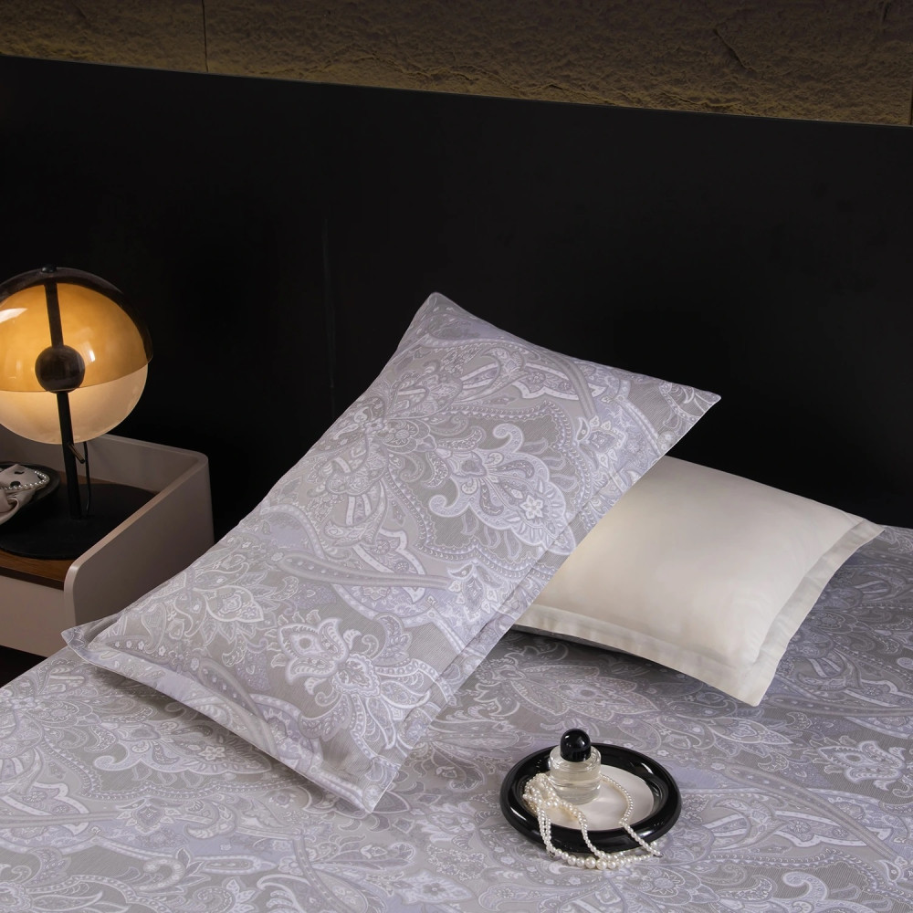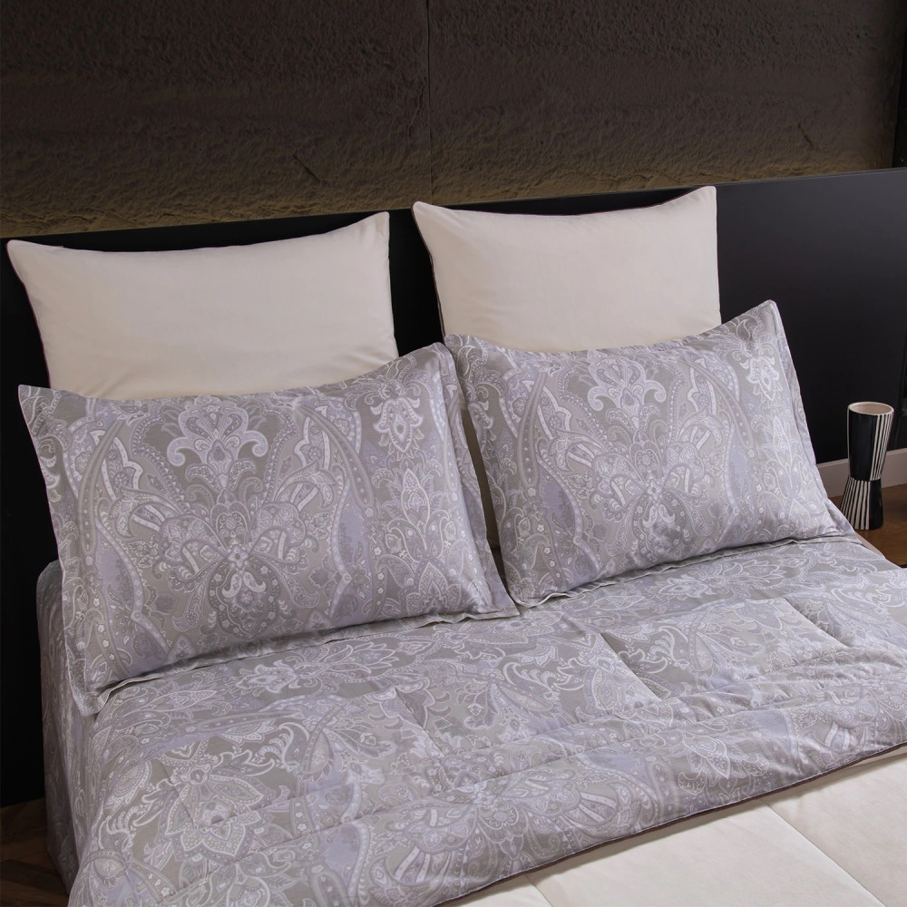 В комплект входят четыре наволочки: 50x70 см (2 шт) с запАхом (кармашком) выполнены из сатина 100% хлопка, с ушками и широким кантом по периметру; 70x70 см (2 шт) на молнии - верх из мягкого велюра, низ из сатина 100% хлопка, оформлены бархатным кантом.