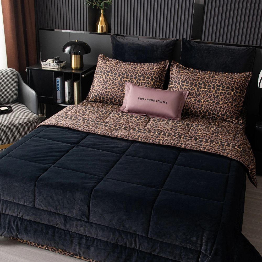 Одеяло выполнено с изысканной геометрической стёжкой и оформлено бархатным кантом. Верхняя сторона: мягкий велюр, придающий комплекту благородный вид и особую уютность, нижняя сторона: сатин из 100% хлопка, обеспечивающий естественную воздухопроницаемость и комфорт во время сна. Наполнитель: современное 100% эковолокно микрогель, лёгкое, гипоаллергенное и сохраняющее форму даже после многократных стирок. Зимой под таким одеялом тепло и уютно, а летом благодаря отличной циркуляции воздуха не будет жарко.