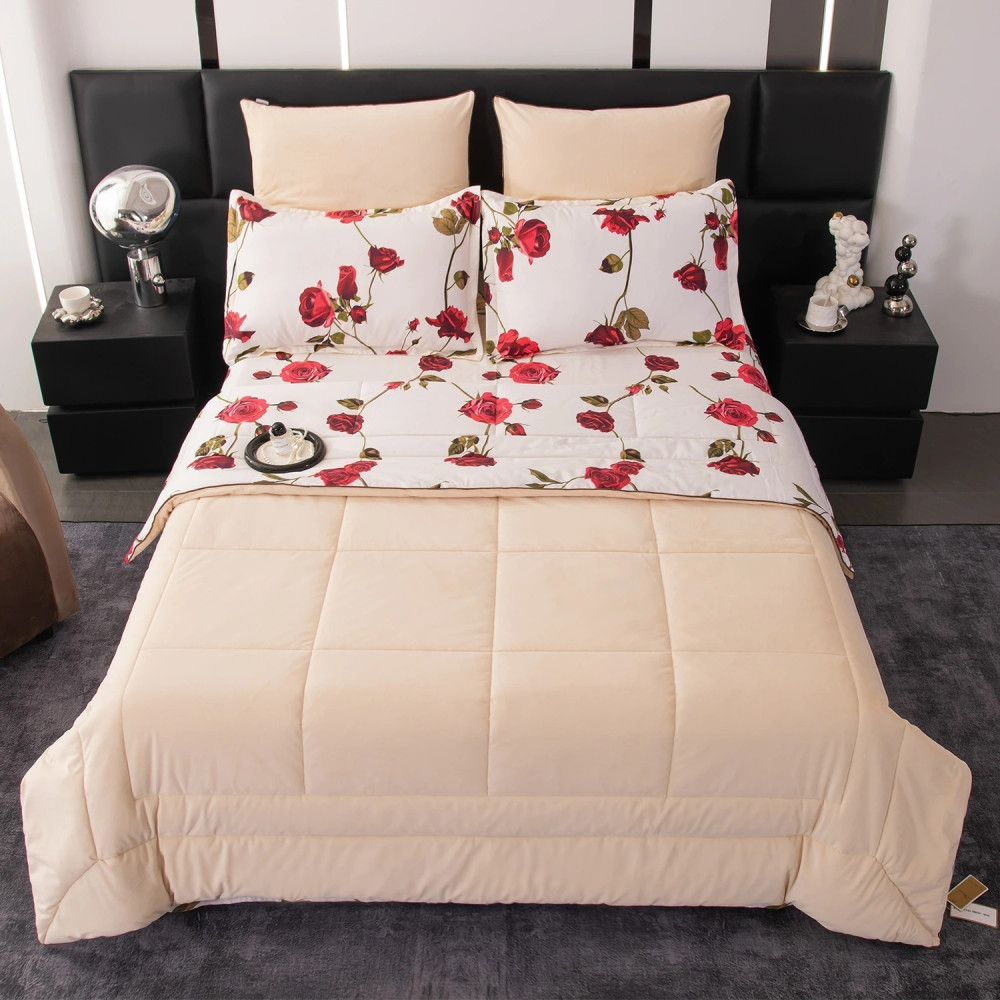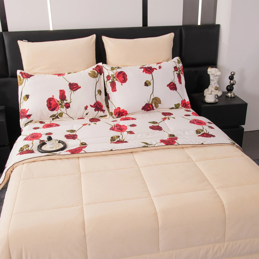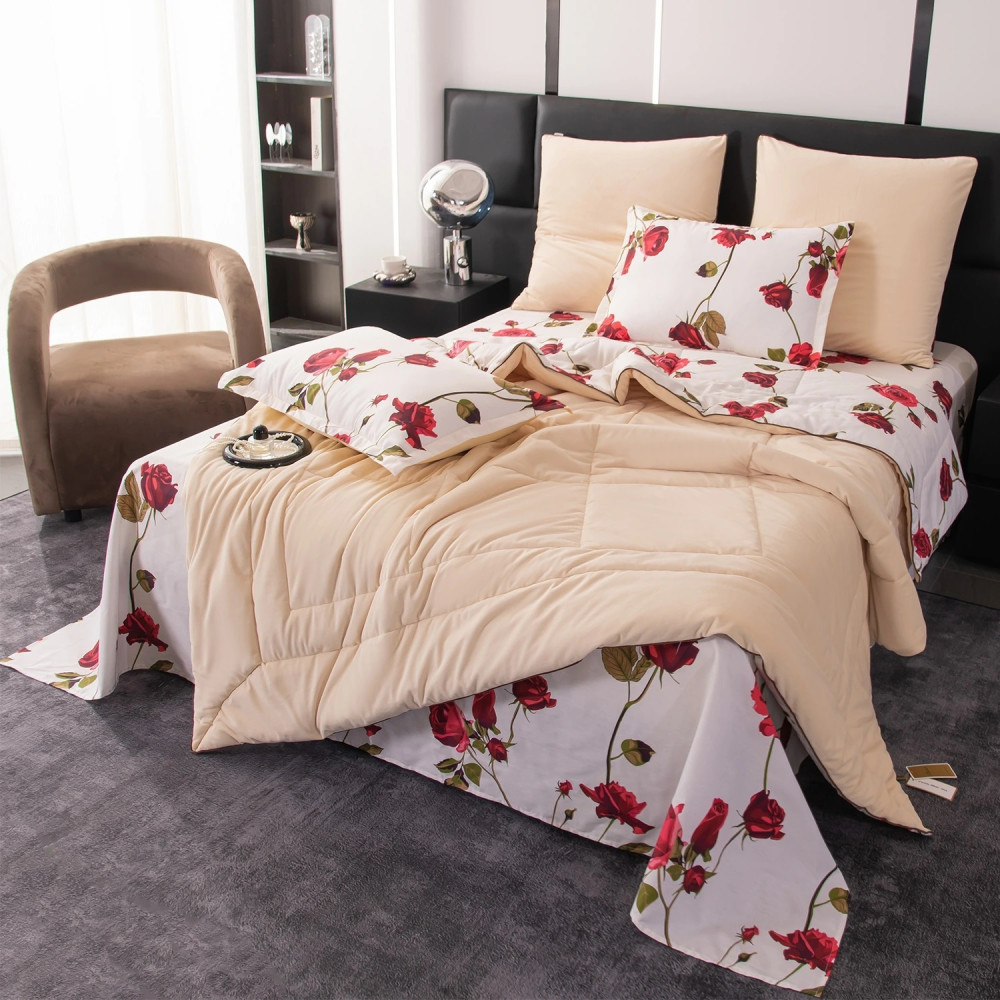 Комплект постельного белья Сатин Velouria Luxe с Одеялом 015 Евро 4 наволочки, простынь на резинке 160x200x25