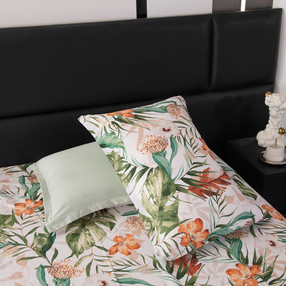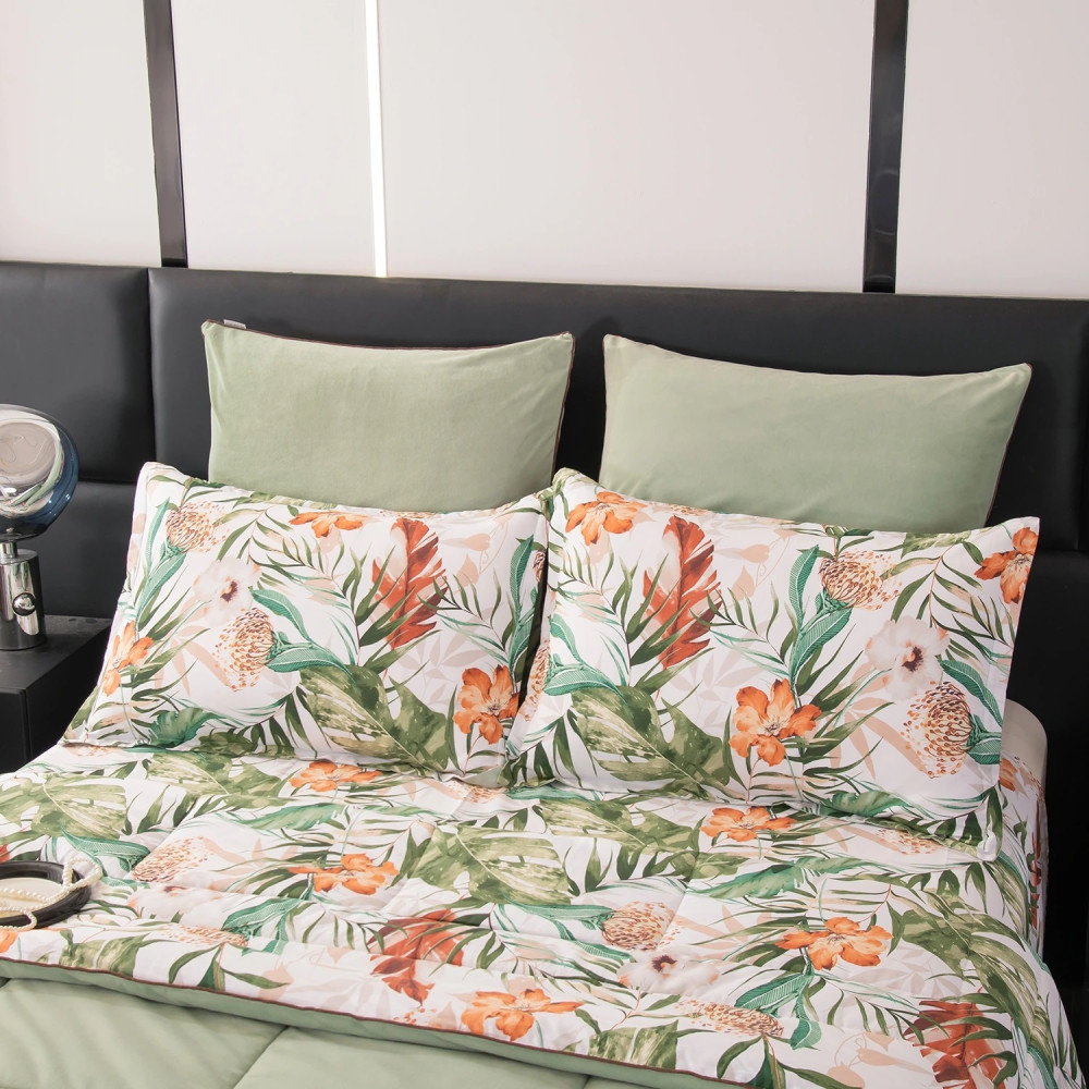 В комплект входят четыре наволочки: 50x70 см (2 шт) с запАхом (кармашком) выполнены из сатина 100% хлопка, с ушками и широким кантом по периметру; 70x70 см (2 шт) на молнии - верх из мягкого велюра, низ из сатина 100% хлопка, оформлены бархатным кантом.