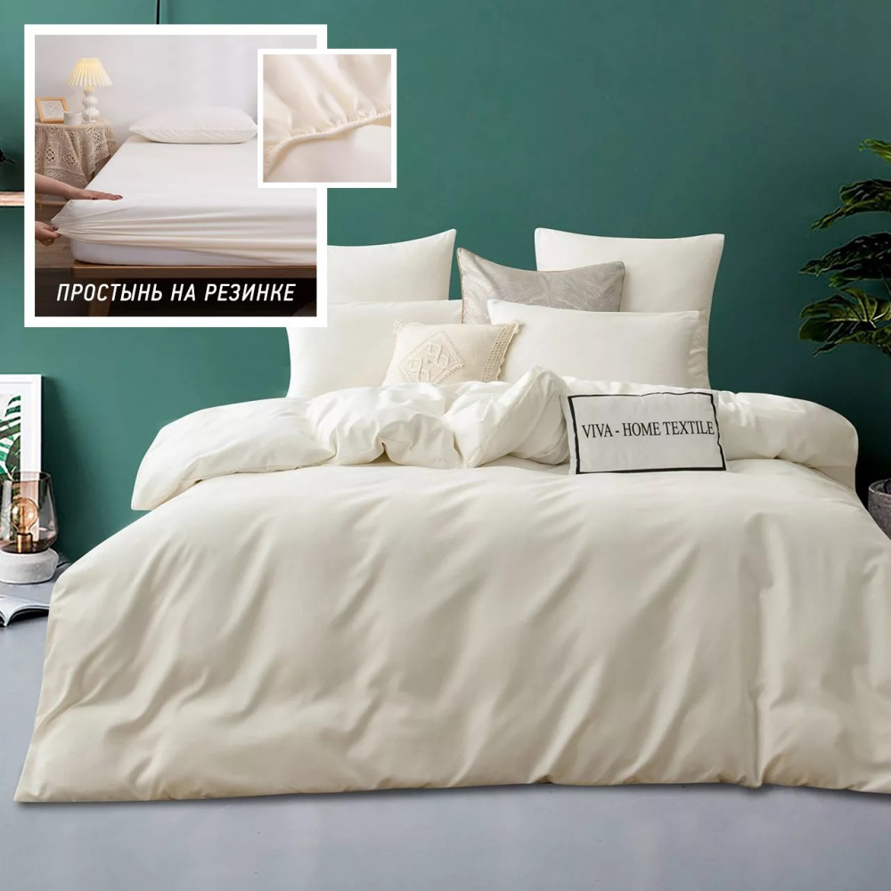 Комплект постельного белья Однотонный Сатин CS037 на резинке Молочный 2 сп. наволочки 50x70