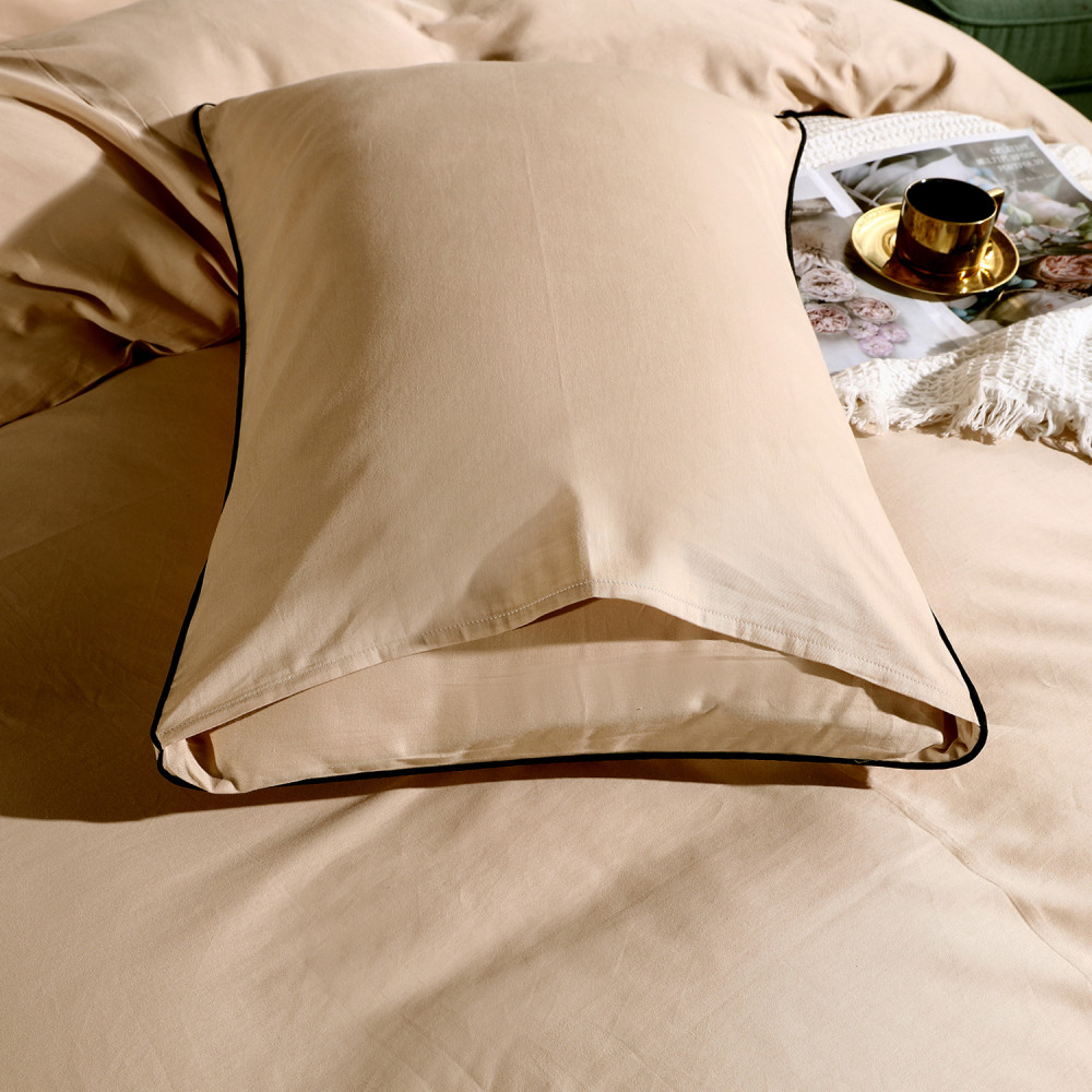 Постельное белье Египетский хлопок Элитный Кремово-бежевый 2 спальный, на резинке 140x200x30