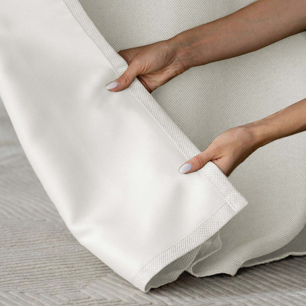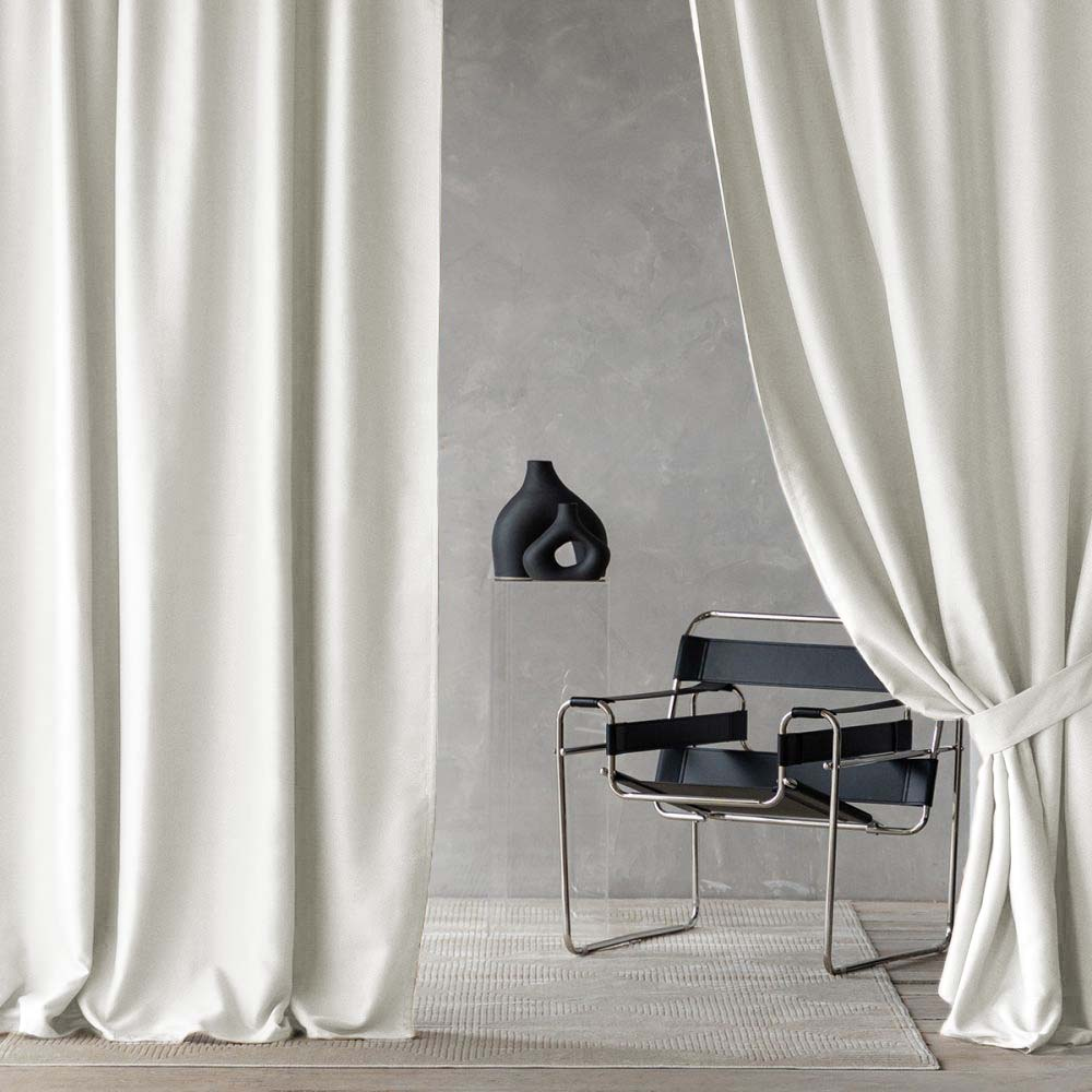 Прямые портьеры на шторной ленте из светонепроницаемой ткани-димаут с фактурой "рогожка". Состав - 100% полиэстер.
